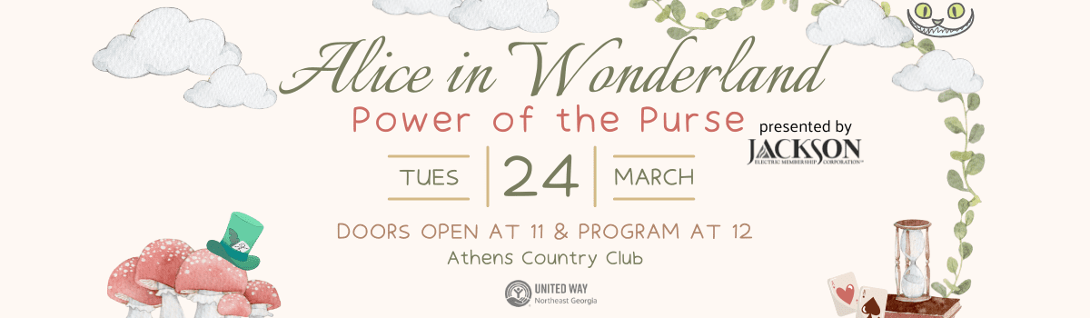 Join United Way of Northeast Georgia for an unforgettable afternoon as we transform our annual Power of the Purse event into a whimsical Wonderland of Support. This year’s experience invites you to journey “through the looking glass” to better understand the realities faced by ALICE households—Asset Limited, Income Constrained, Employed—who work hard yet struggle to afford the basics right here in our own communities.